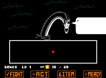 A single Undertale-style fight using the Create Your Frisk engine against a monster named for Irish mythology. This the first thing I programmed in Lua. To play copy the mod files into the latest Create Your Frisk release and select it from the mod selection screen. The controls are the same as Undertale: Arrow keys, Z and X.